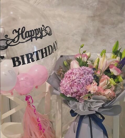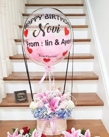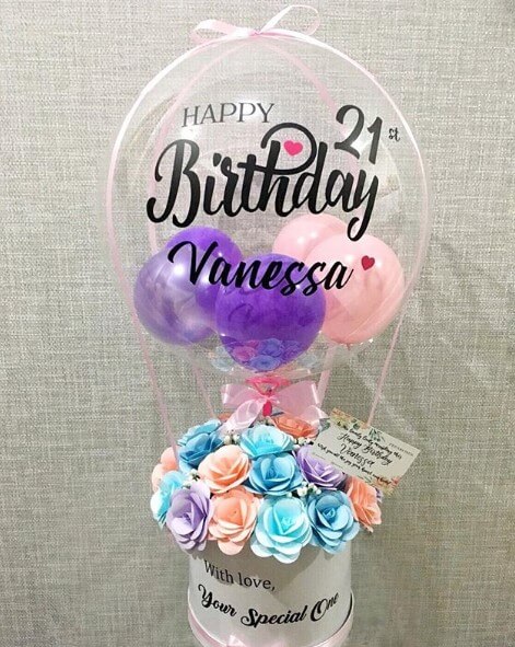 Distribuye tu amor con flores y globo Personalizado