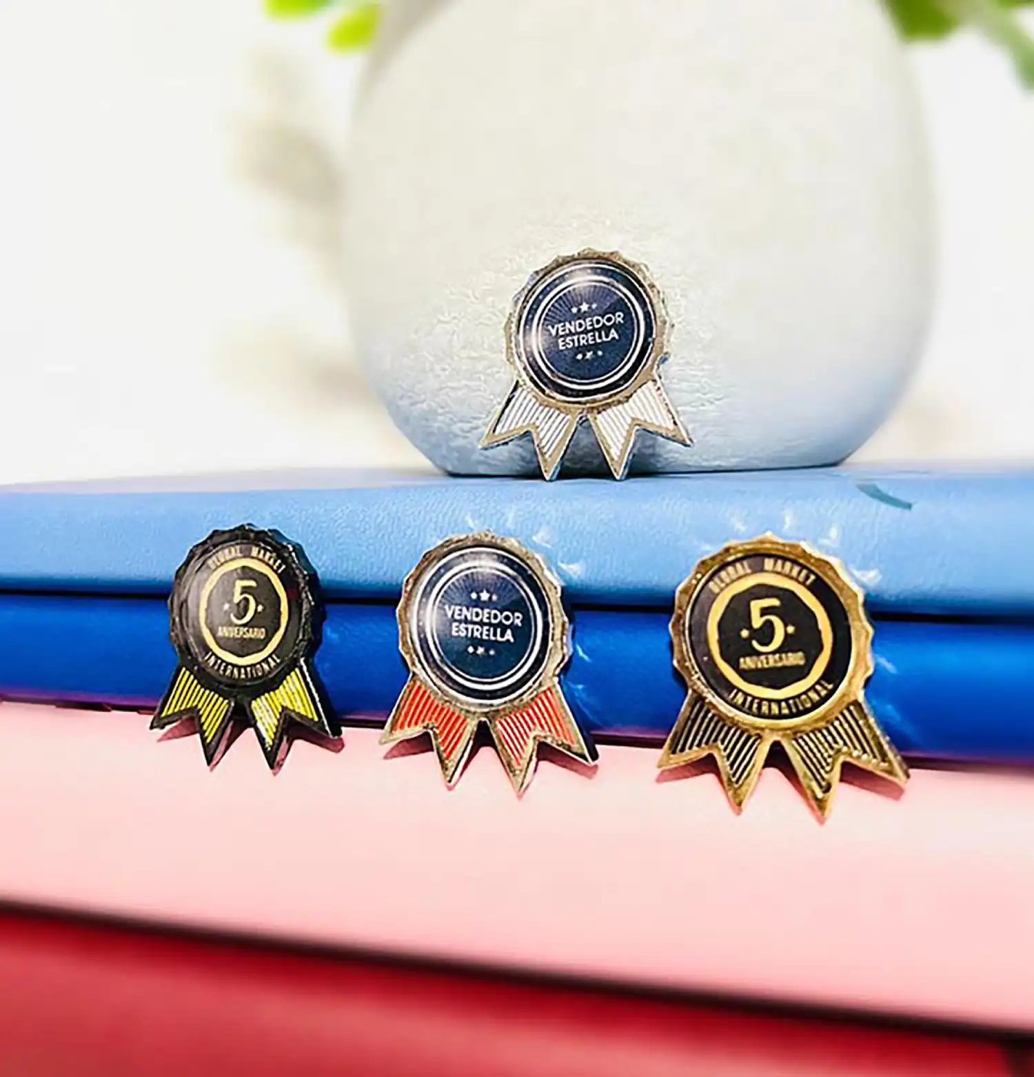 En Desayunos Sorpresa Bogotá, ofrecemos una variedad de pines tipo medalla en Bogotá. Estos pines son versátiles y pueden ser utilizados en diferentes contextos, desde eventos deportivos hasta ceremonias académicas. Nos especializamos en crear pines que no solo se vean bien, sino que también transmitan el mensaje correcto.